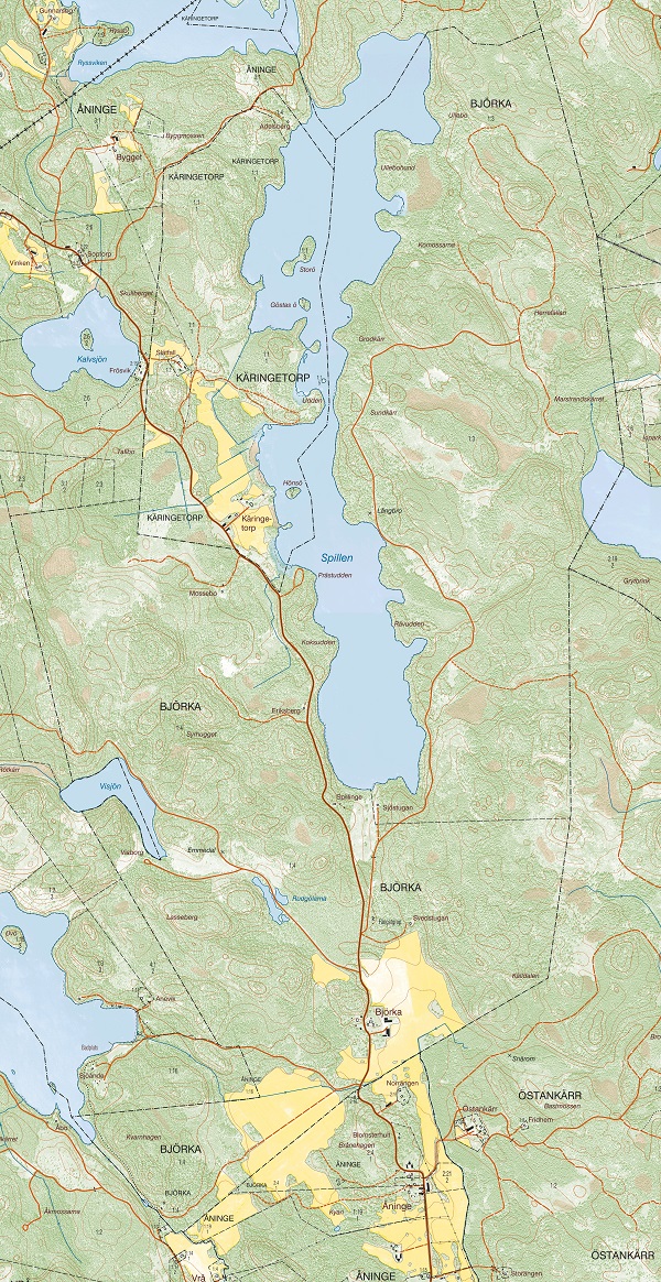 Fastighetens totala areal är på ca. 1100 ha, inklusive 116 ha vatten sjöarna Spillen, Hallongen, Visjön och Anen. Ytterligare ca 40 ha angränsande jaktmark arrenderas mot sjön Anen.